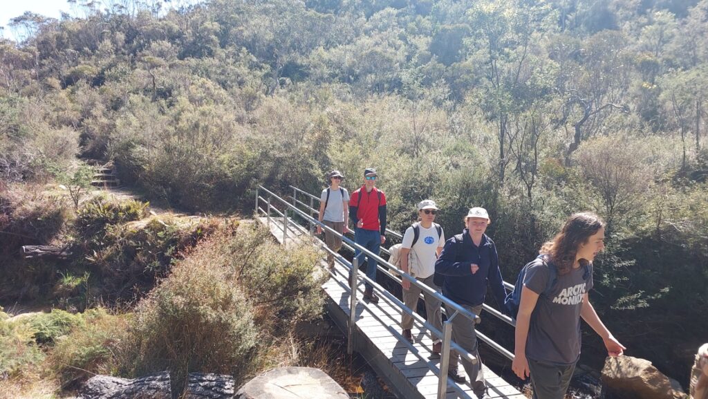We met at Wentworth Falls station at 10:15 for a quite relaxed 10:30am start. The first section was the Charles Darwin walk alongside a creek, with lots of boardwalks and bridges zigzagging across.