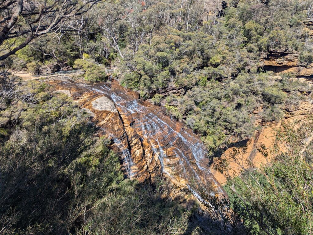 We’re treated to our first view of the Jamison Valley now, through the narrow cleft carved through by the eponymous Jamison Creek. We are about to become very well acquainted with this valley, as the rest of the walk skirts this very cliff top (who would have guessed).