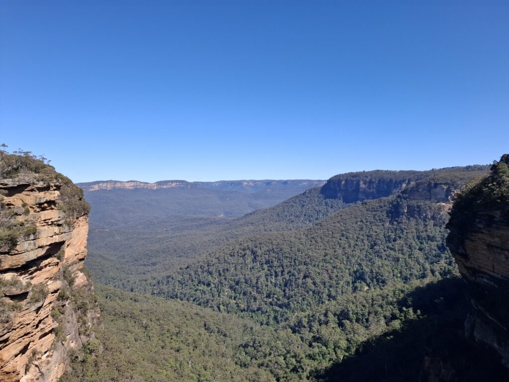 The “Grand Clifftop Walk” is a 21km route along the Blue Mountains clifftop from Wentworth Falls to Katoomba.