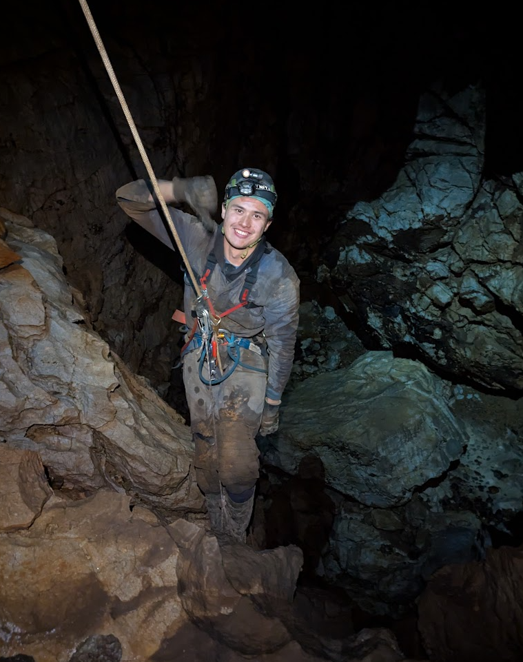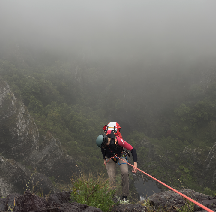I was manning the first anchor in the canyon, a small 10 metre drop. Leo went down first, as he poked his head over the next drop, he got visibly excited. I watched from above as each member of the team got to look down the canyon and celebrate. I finally went down and got a look, the slot we spotted on the LIDAR was real, and rather spectacular. Another small drop and we were in the slot itself, at this point the canyon is less than 2 metres wide.