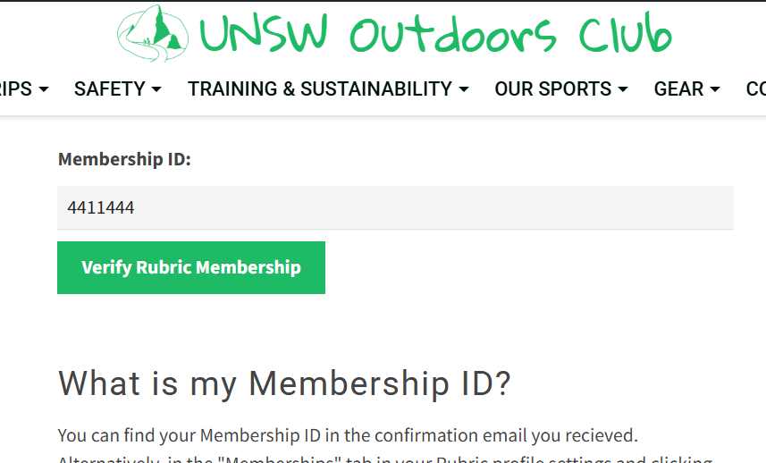 7. Use this Membership ID to fill in the form at My Account – UNSW Outdoors Club. That's it 🥳🥳