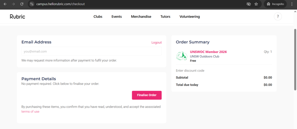 3. Go to https://campus.hellorubric.com/?s=14119 and get an UNSWOC membership.