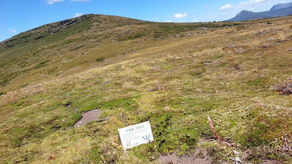 The tops of Moonlight Ridge gave us the first taste of the winds we were about to face. The Garmin InReach forecast was about 25kph, however this was very notably not the case. Either the forecast was outright wrong, or was for sea level elevations.