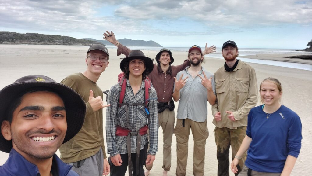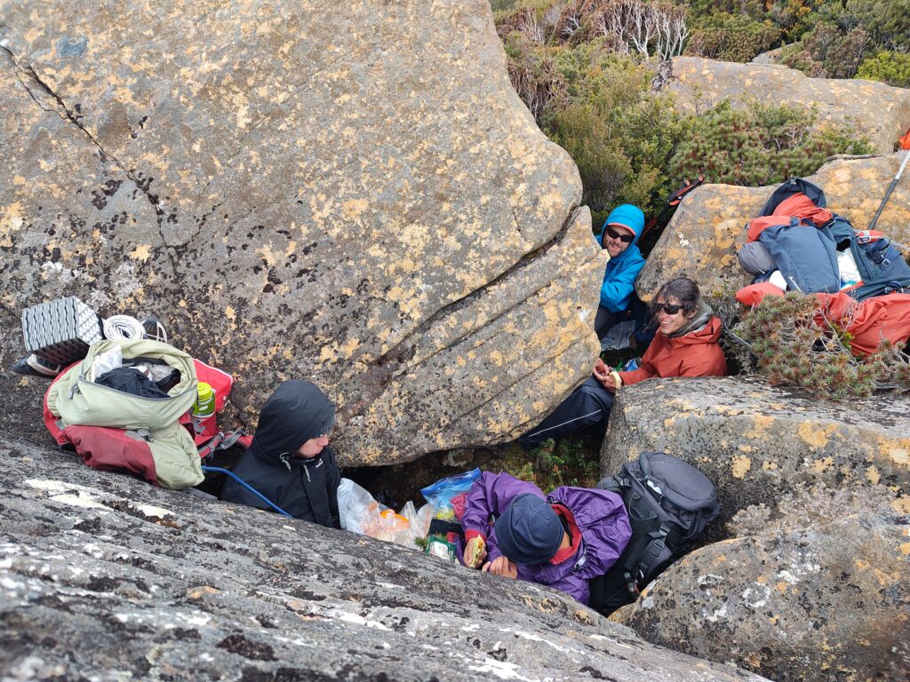 On the 2nd of February, 4 brave participants and 4 valiant trip leaders arrived in Hobart to meet up, before tackling the Southern Ranges Traverse. A gear check, shopping trip, lunch1, bus ride2, and car shuttle later, the group arrived in Ida Bay