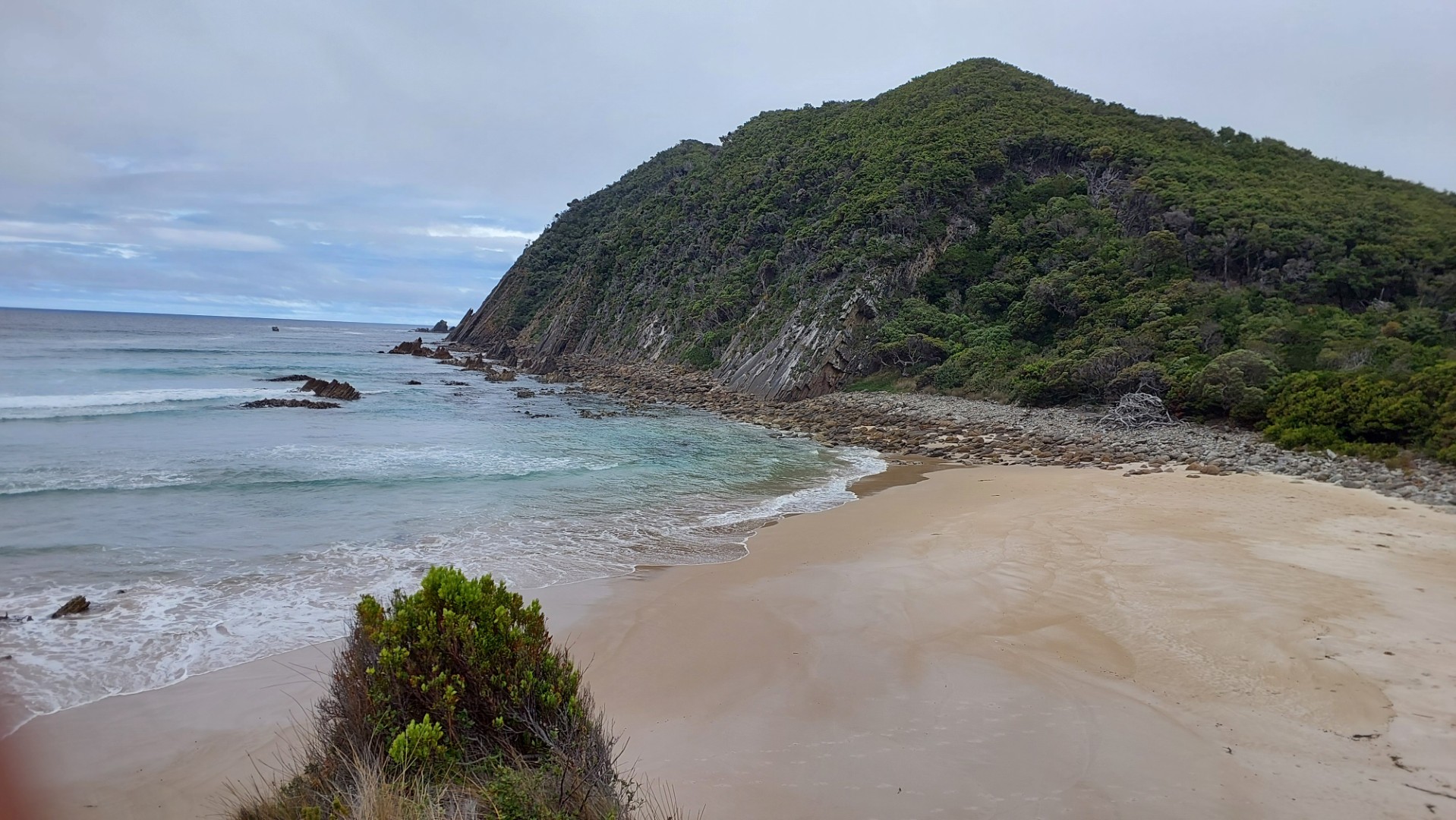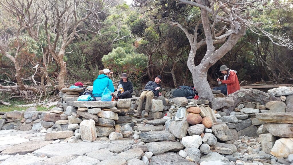 However at 5:30pm as we approach camp for the night, a stunning sight for sore eyes emerged from the ocean! Callum and Lena had made it to Hobart, and then hitchhiked back to the end of our track to start walking in the opposite direction to meet us. They even bought presents (drinks and chocolate) 🥳