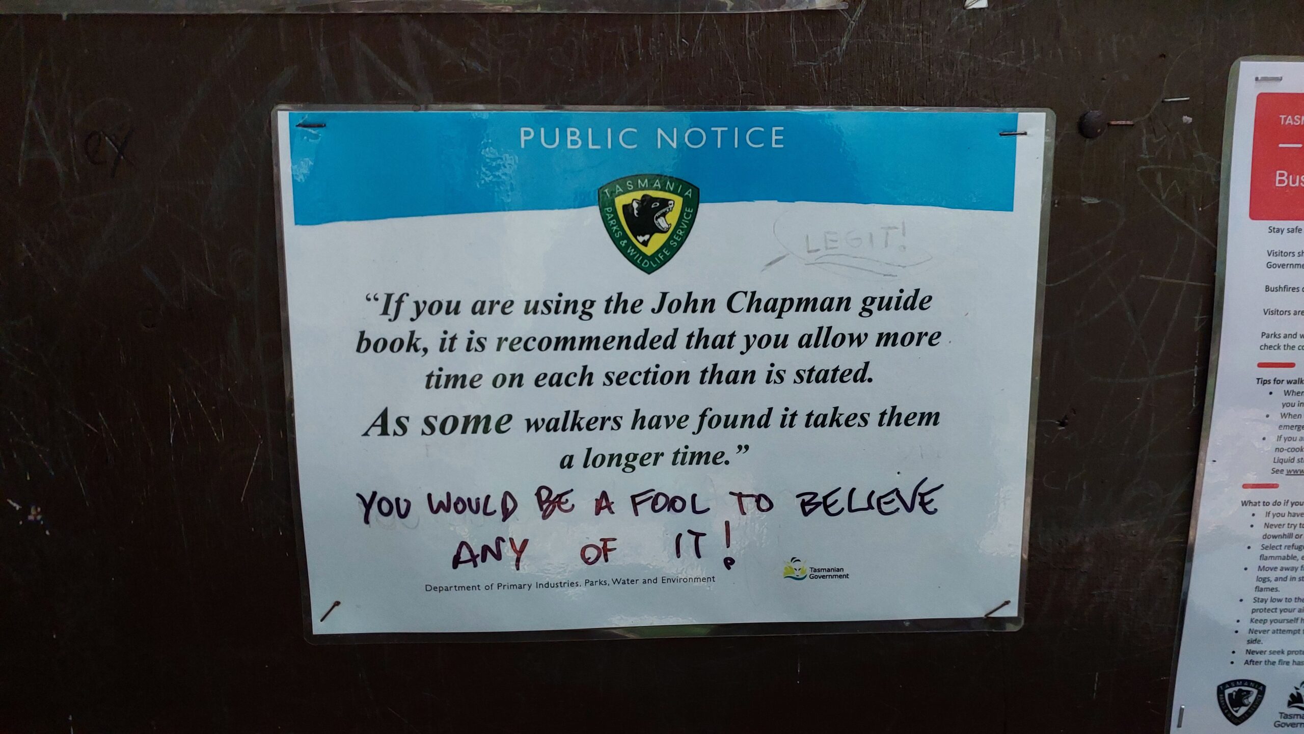 In December 2025, Callum and Rory floated this idea to me, and about 4 minutes later I was sold. My planning commenced shortly and I was faced with the gaping hole of information surrounding this walk. National Parks makes no mention of the trail and besides a small handful of blogs/vlogs, the only reliable source of information was John Chapman's guidebook from 2014 (found at the local library!).