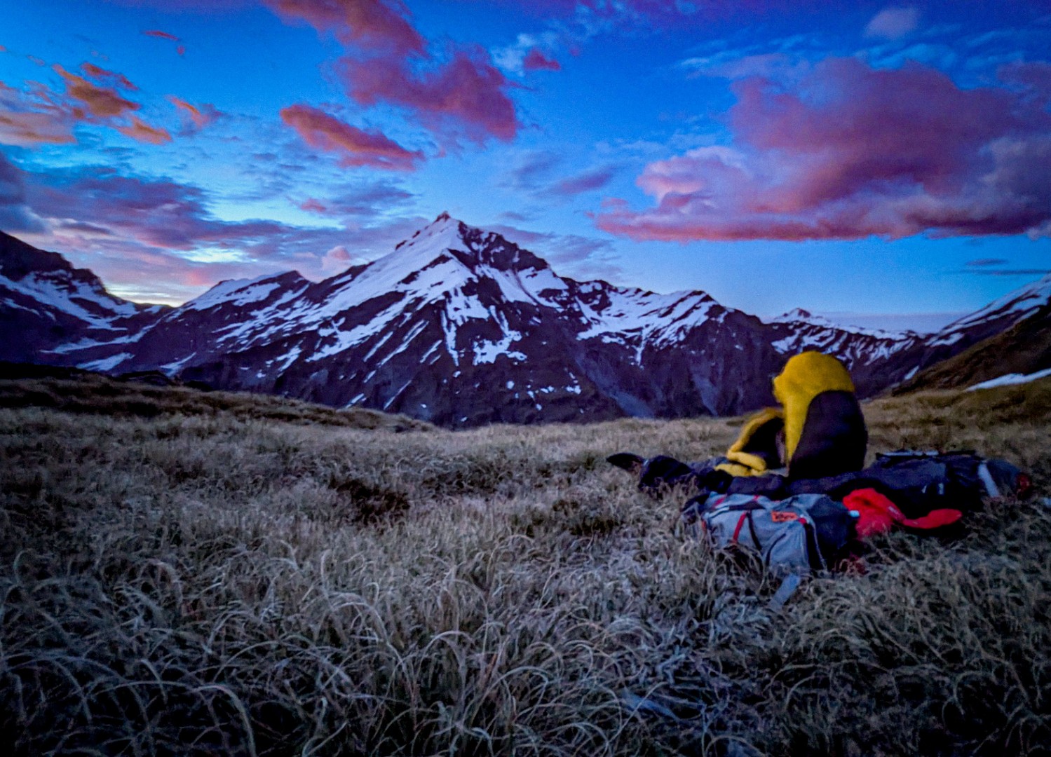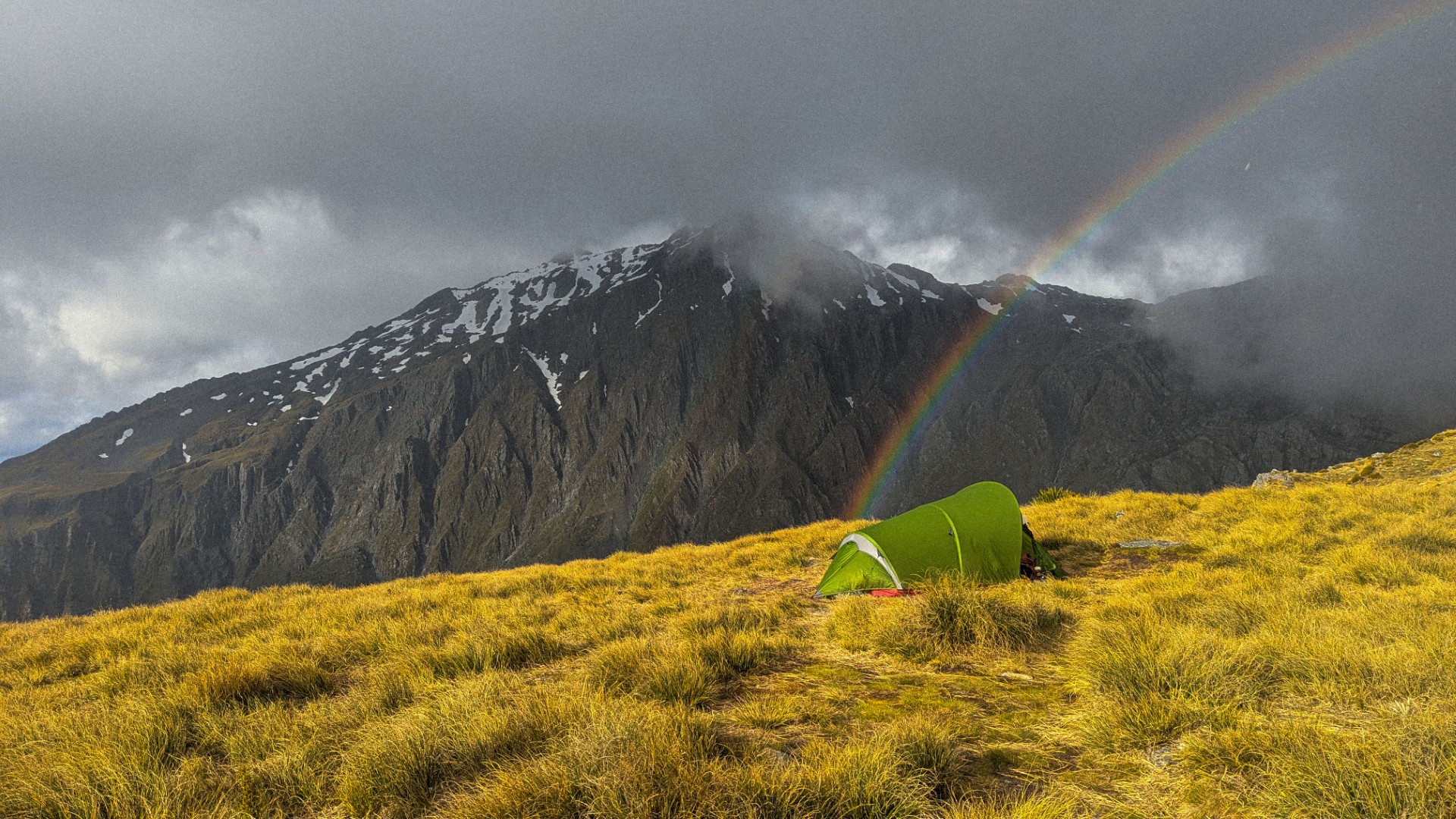 “Overnight bivvy sight below Mt Brewster being blessed by a rainbow.”
